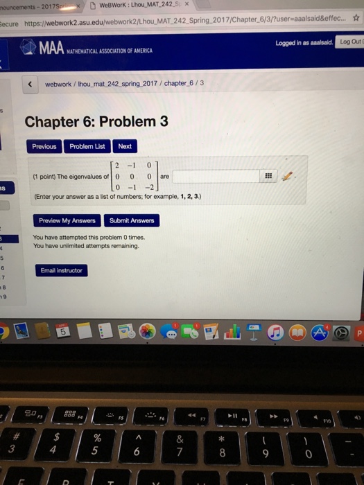 The exam consists of ve 5 problems some of which may have several parts. The eigenvalues of the matrix a 2 4 1 2 4 8 11 16 2 2 1 3 5are 3 with multiplicity 2 and 5 with multiplicity 1. Mat 460 applied real analysis. Mat 242 introductory linear algebra course videos.