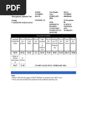 This management aptitude test scorecard consists of the details like name percentile score scaled scores etc. 22 answers 2 7k views i want to study in b schools of mba. Candidates can download their scorecard for ibt mode by entering their registration number and roll number. The mat composite score is given on a scale of 199 to 801.