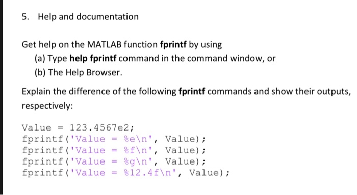 The function then continues in a similar manner through any additional matrix arguments. Disp is a function that will display a value name. The fprintf function is used for printing information to the screen. The fprintf function is vectorized for nonscalar arguments.