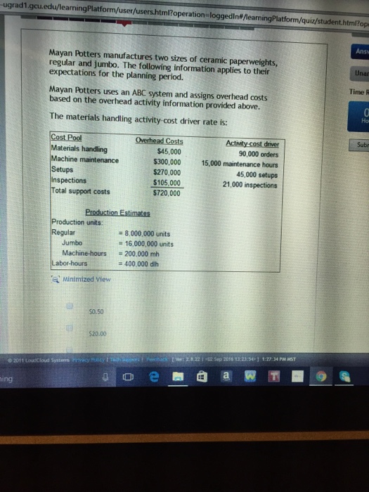 The materials handling activity cost driver rate is. Mayan potters uses an abc system and assigns over load costs based on the overahead activity information provided above. Mayan potters manufactures two sizes of ceramic paperweights regular and jumbo. Machine maintenance 300 000 15 000 maintenance hours.